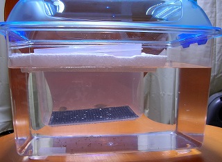 今日、ローチ君の家(竹炭の筒)を移動してみました。